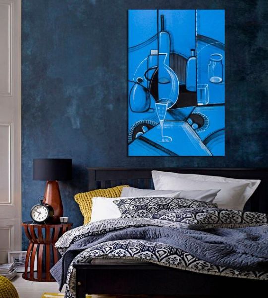 - Палитра светлая, преобладают белый и голубые оттенки. Акценты расставляются ярким кобальтовым и зеленым в сочетании с золотом.