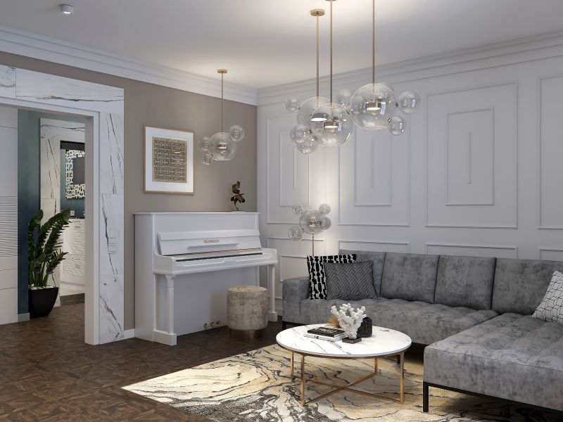 Вид императорского стиля, основанный на античных мотивах. Базу составляют четкие прямые линии, дорогие, но не помпезные материалы – шелк, атлас, ценные породы дерева. Идеально оформить пол квартиры мозаикой. Классицизму присущи изящные линии и нежные тона голубого, розового, лилового, ванильного. Акцент на зеркалах во весь рост, кружевной лепнине. Не нужные большие пространства, но очень желательны высокие потолки.
