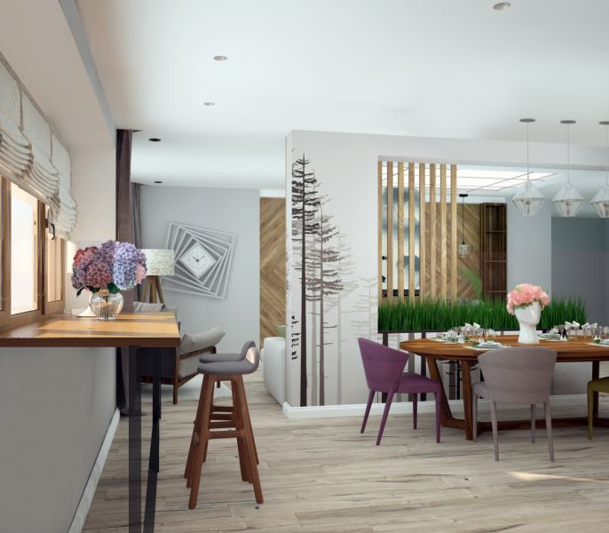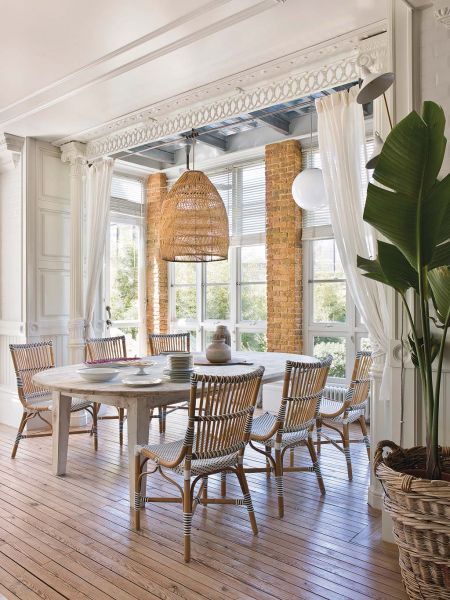 Все, что можно взять у природы в условия городской среды, идет в экостиль. Никакой синтетики, больше зелени – живой или в палитре. Ротанг, тростник, дерево, бамбук – любые природные материалы подходят для оформления.