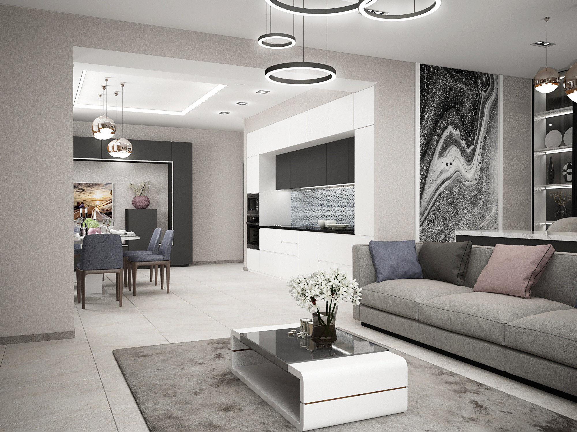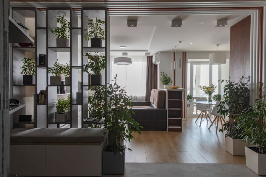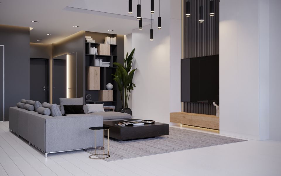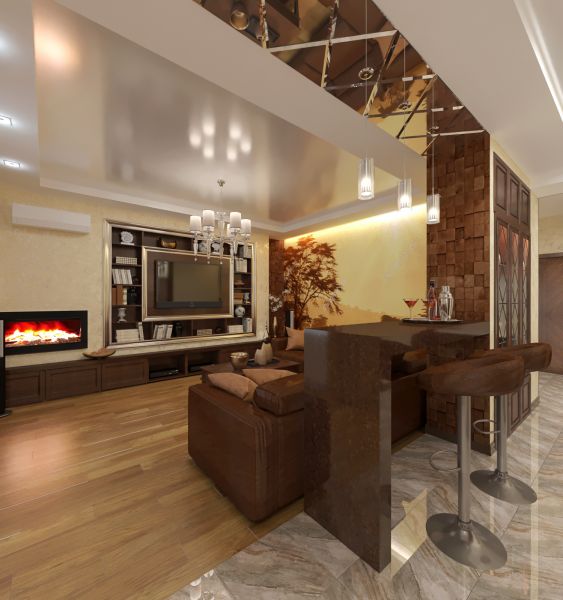 - Комнаты зонируются, каждый участок имеет свое освещение.
