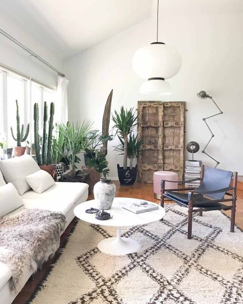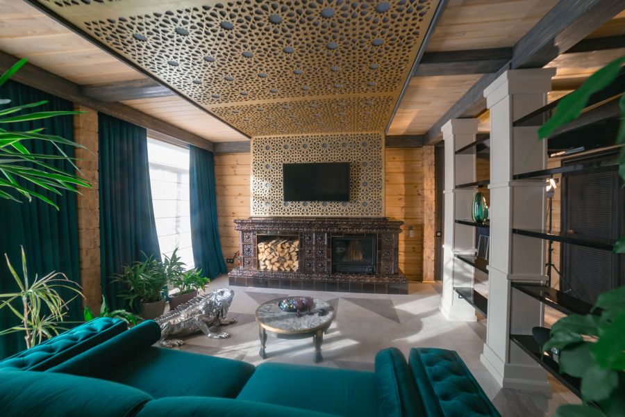 Популярный этностиль из-за свободы творчества. Но важно не перестараться, жить среди перенасыщенного дизайна невозможно. В основе лежат песочные и глиняные оттенки, типичные орнаменты, аксессуары из соломы, шкур животных, керамика. Свет теплый, в идеале – имитирующий живой огонь. Мебель нарочито грубая, украшенная узорами.