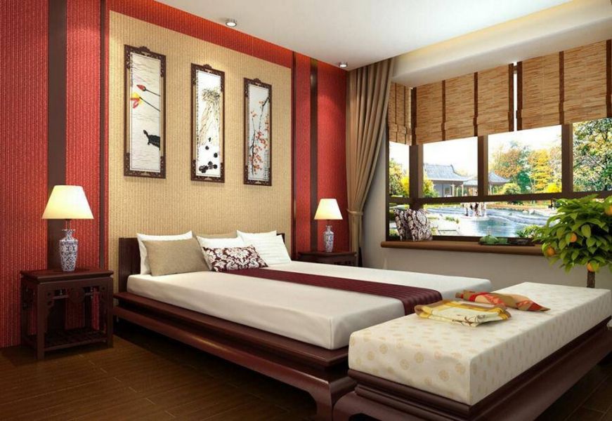 Дизайн, в котором каждый объект наполнен философией. В китайском интерьере обязательно присутствует ширма. Мебель покрывается лаком. На полу лежат темные доски, циновки. Уместен многоуровневый потолок с подсветкой. Основная гамма – киноварь, винный, миндаль, коричневый. Подчеркнут стиль фигурки и изображения драконов, веера и напольные вазы, объемные фонарики из бумаги и фанеры.