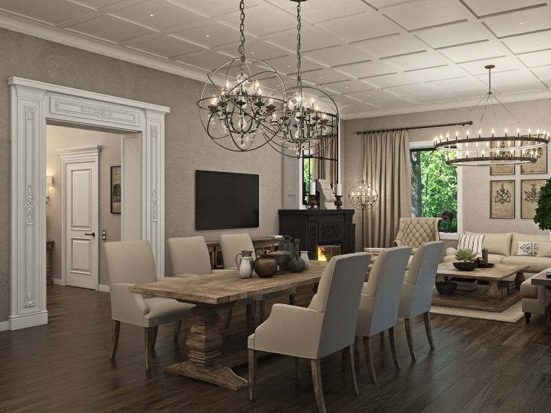 Брутальный среди классических направлений. Это стиль рыцарских замков, поэтому во главе мощь. Но стиль интерьера не мрачный, а очень уютный за счет натуральных материалов и постановки света второго уровня. Стены оформляются кирпичом или имитацией, допустима штукатурка. Обстановка визуально основательная, из дерева и металла. Аккуратно вводить мягкую мебель, иначе можно все испортить. Нетипичны шкафы – их нужно спрятать от глаз или заменить сундуками.