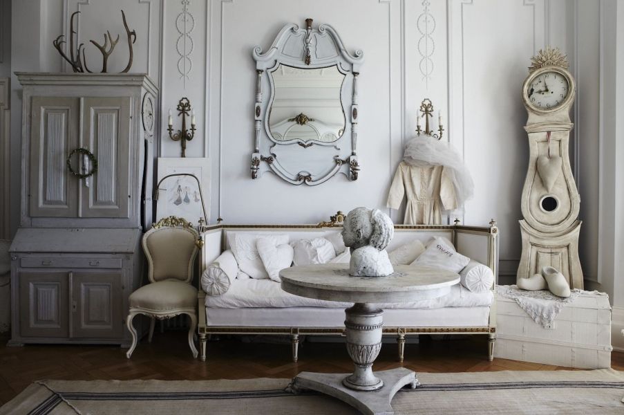 Микс новых и доставшихся по наследству объектов. Мебель покупается на барахолке или спускается с дачного чердака и реставрируется самостоятельно. В основе типового дизайна квартиры светлые цвета, милые дополнения: органза на окнах, вышивка, диванные чехлы с бантиками. Шебби шик стремится к помпезности, а потертости и трещины создают необходимую атмосферу.