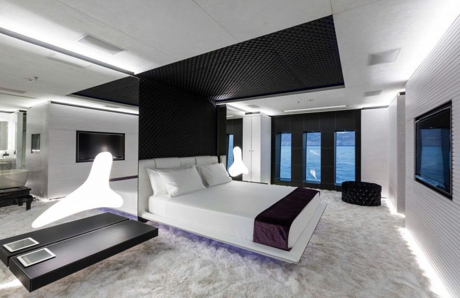 Экспериментальные проекты помещений, в которых эргономика сочетается с необычными формами. В монохромный интерьер допустимо включать яркие акценты. Но декором служат в первую очередь высокотехнологичные предметы быта.